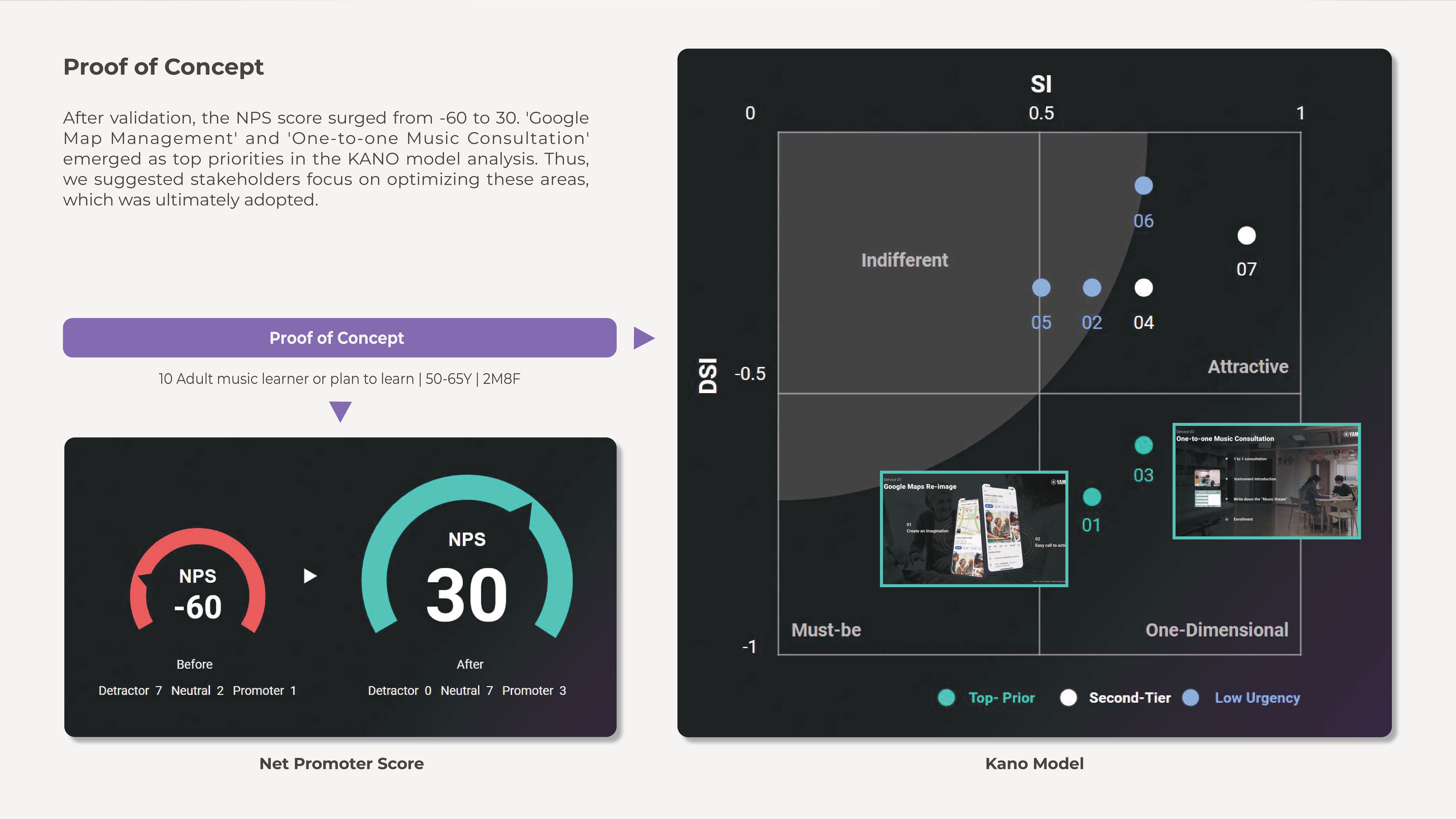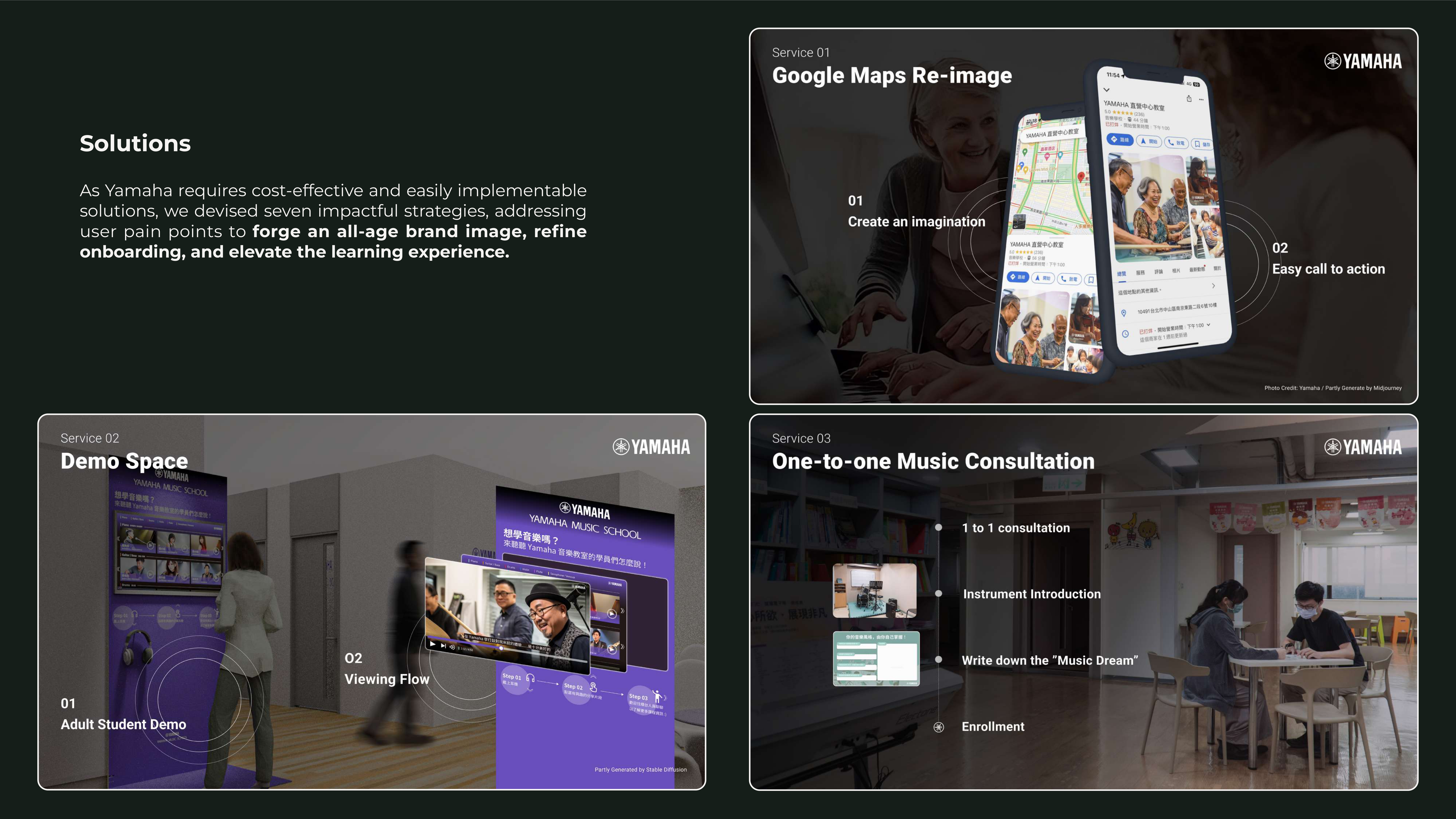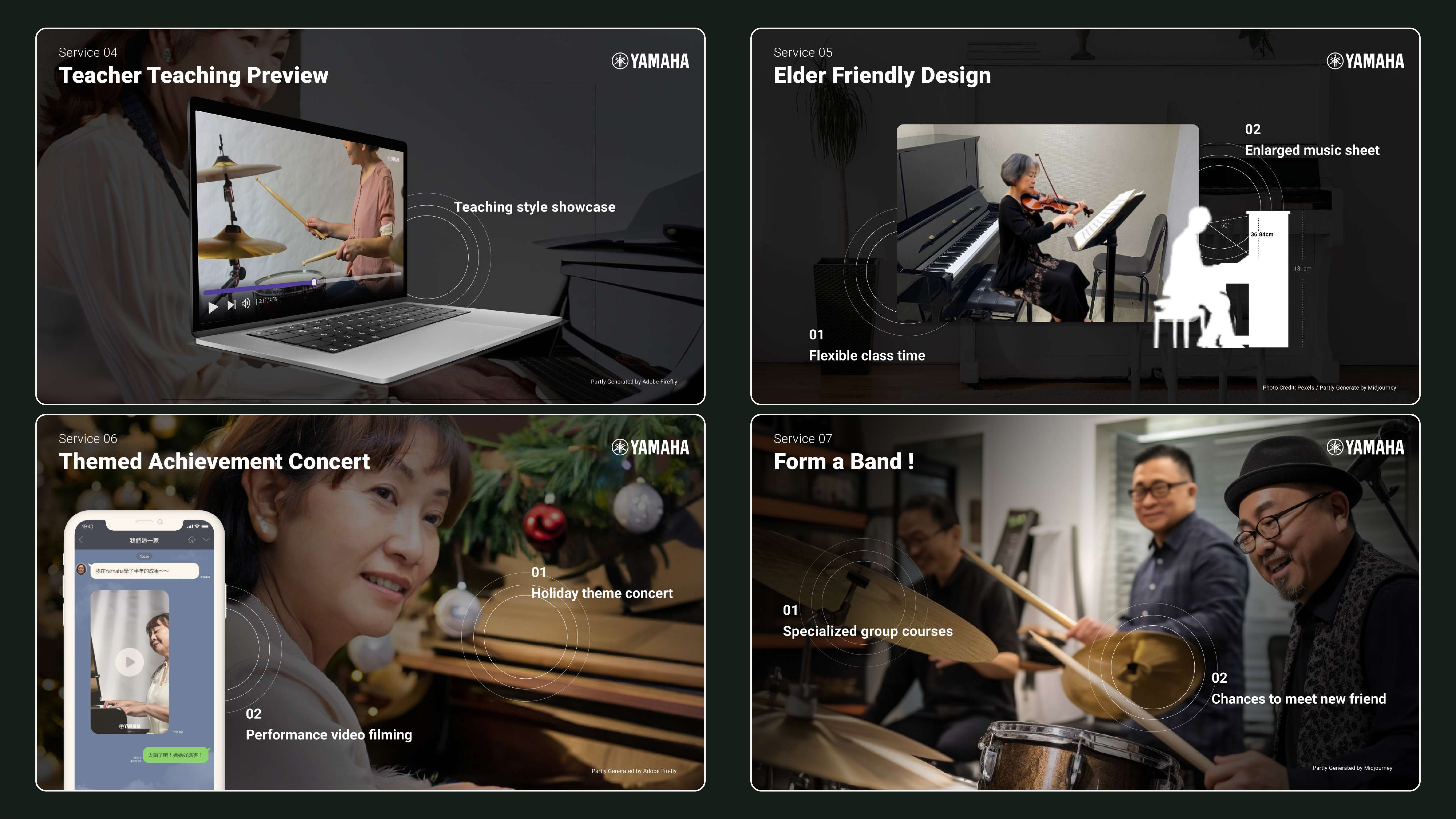 These solutions were successfully adopted and implemented by Yamaha, effectively optimizing their adult music services and helping the brand pivot for continued growth in a changing market. The project established a new brand identity for Yamaha as a "lifelong partner in music learning."